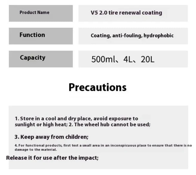Suitable for all types of rubber tires and can be used regularly to maintain a fresh, new-tire look